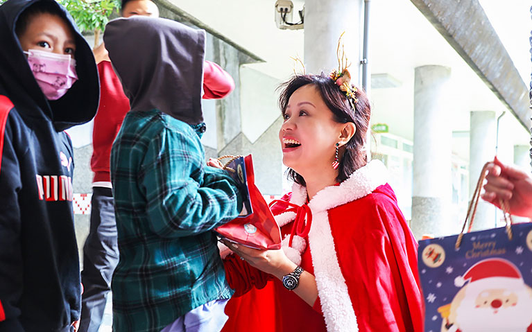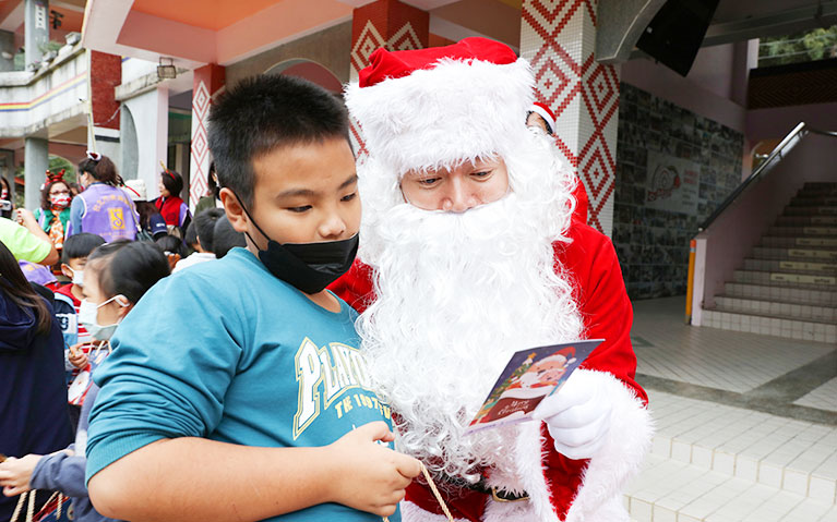 「OKRUN愛陪伴計畫」走入原鄉學校,其中最讓孩子們期待的,就是每年於溫馨的聖誕節會進行的耶誕傳愛,我們希望藉由此活動,能提升大家對原鄉小學的關注。 每年到愛陪伴計畫遴選的陪伴國小發送象徵祝福的聖誕禮物,號召志工親手準備文具禮物包,在耶誕活動中扮成聖誕老人前往每個陪伴學校,用溫馨輕快聖誕歌曲、傳遞佳音,讓參與的孩子與同仁都充分感受到溫暖與陪伴。